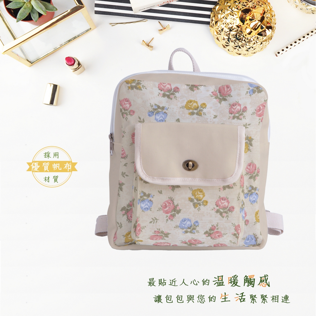 復古鎖扣帆布後背包 全彩印刷
