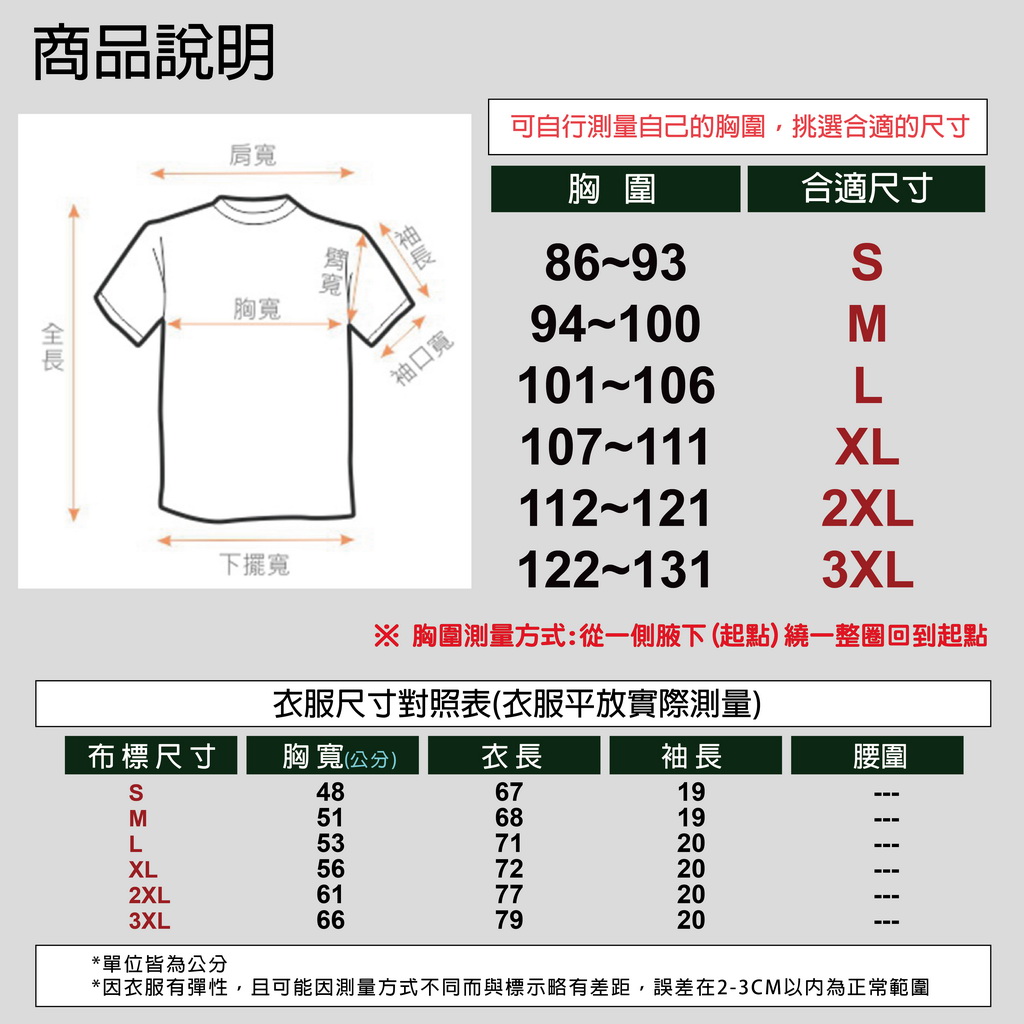 尺寸 : S-3XL